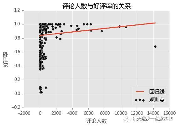 最后,再來回答第三個(gè)問題,評(píng)論人數(shù)與好評(píng)率是否存在某種關(guān)系呢?