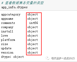 從上面的數(shù)據(jù)變量類型的返回結(jié)果看,只有評(píng)論人數(shù)comments變量是數(shù)值型的,其他變量均為字符型,很明顯,對(duì)于APP的下載人數(shù)、好評(píng)率和軟件大小均可以轉(zhuǎn)換為數(shù)值型,同時(shí),軟件的更新時(shí)間也可以轉(zhuǎn)換為真正的日期型。探索過程中,細(xì)心的你一定會(huì)發(fā)現(xiàn),APP的安裝人數(shù)單位不一致,有的以萬為單位,有的以億為單位,有的就沒有單位;同樣,軟件的大小,有的以MB為單位,有的則以KB為單位,所以在數(shù)據(jù)類型轉(zhuǎn)換前,一定要處理好量綱。