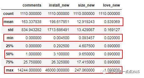 OK,數(shù)據(jù)清洗這塊的任務(wù)就完成了,代碼中有很多細(xì)節(jié)的地方值得注意哦~希望這些數(shù)據(jù)清洗的技巧對(duì)各位網(wǎng)友有所幫助。接下來,我們?cè)賮砜纯磾?shù)據(jù)的描述性統(tǒng)計(jì)結(jié)果: