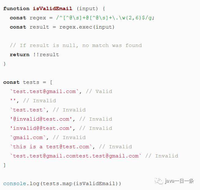 這是一個(gè)非常簡單的例子,它忽略了許多非常重要的電子郵件有效性邊緣情況,例如無效的開始/結(jié)束字符以及連續(xù)的周期。我真的不建議在你的應(yīng)用程序中使用上述表達(dá)式;最好是使用一個(gè)有信譽(yù)的電子郵件驗(yàn)證庫或繼續(xù)探索更完整的電子郵件驗(yàn)證Regex。