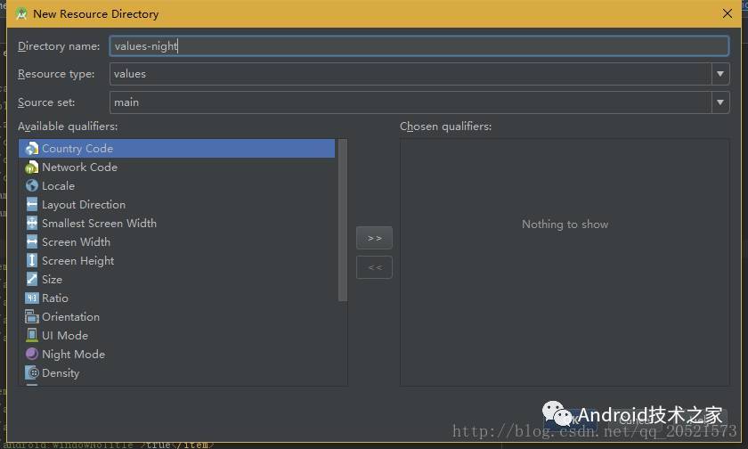 (1)新建values-night目錄,如下: