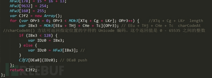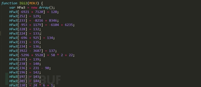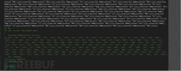 ? 從上面找到了 JS 代碼,發(fā)現(xiàn)和我們分析的樣本的第一層混淆方式略有不同: