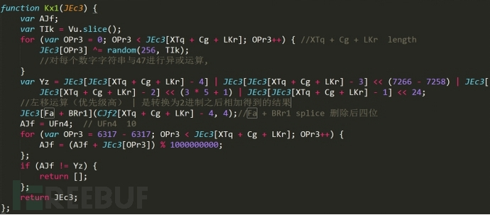 ? 對(duì)所有的數(shù)字進(jìn)行異或運(yùn)算。在最后,還要通過一系列特定的計(jì)算,與后四位的標(biāo)志位進(jìn)行比較,進(jìn)行文本內(nèi)容的校驗(yàn),來判斷該文本是否被修改,或者是內(nèi)容不全。