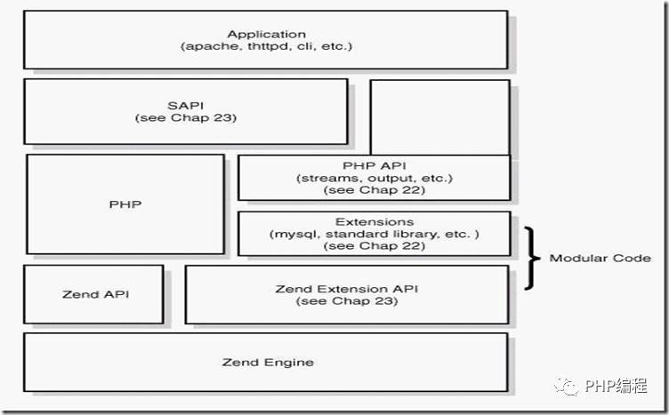 • PHP總共有三個(gè)模塊:內(nèi)核、Zend引擎、以及擴(kuò)展層;