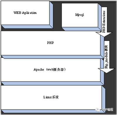 從圖上可以看出,php從下到上是一個(gè)4層體系