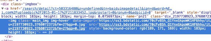 我們復制這個地址,然后到剛才的一堆源代碼里搜索一下,發(fā)現(xiàn)了它的位置,但是這里我們又疑惑了,這個圖片有這么多地址,到底用哪個呢?我們可以看到有thumbURL,middleURL,hoverURL,objURL