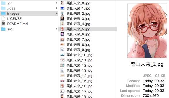 接著就是把圖片保存下來,我們事先建立好一個 images 目錄,把圖片都放進去,命名的時候,以數(shù)字命名。