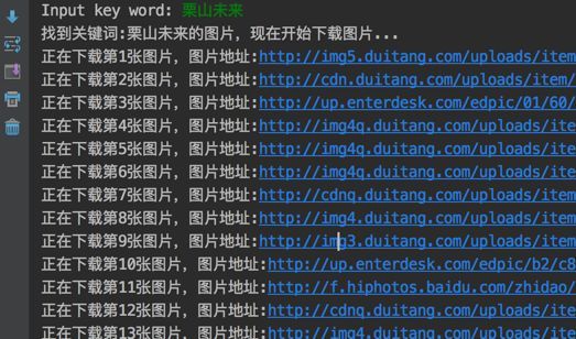 7. print('找到關鍵詞:' + keyword + '的圖片,現(xiàn)在開始下載圖片...')