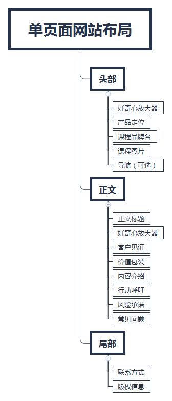 可以說(shuō),所以的專題頁(yè)面都圍繞上面這個(gè)示意圖設(shè)計(jì),這里主要說(shuō)下頁(yè)面布局的順序,很多設(shè)計(jì)者和推廣者往往做網(wǎng)站一開(kāi)始就放出自己的產(chǎn)品信息,比如課程表,其實(shí)這種做法不科學(xué),因?yàn)?,?dāng)訪客打開(kāi)網(wǎng)站頁(yè)面的時(shí)候,第一眼看到你是買廣告的,必然興趣不大,如果先描述產(chǎn)品的前景,學(xué)員就業(yè)案例,價(jià)值包裝等等信息后,在來(lái)介紹課程,這一點(diǎn)很重要!
