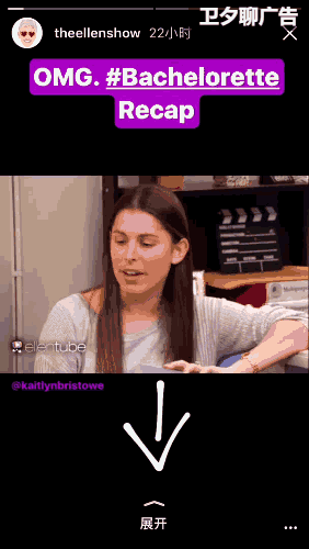 然而,當(dāng)整個短視頻內(nèi)容都在向移動轉(zhuǎn)型的時候,我們很多內(nèi)容提供商和廣告主卻還沒有迅速轉(zhuǎn)變過來。到Instagram的故事頁看一看,會發(fā)現(xiàn)我們很多熟悉的知名媒體并沒有那么多豎版視頻填充,于是他們只能用橫版視頻拼湊,或者用豎版的圖片拼接成一個幻燈在放映。下面是美國著名的脫口秀節(jié)目艾倫秀的官方賬號在Instagram的豎屏頁面: