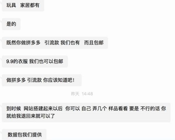 我被小影拉到一個拼多多貨源供應(yīng)的群中,里面多位代理商在推銷自己的貨源。