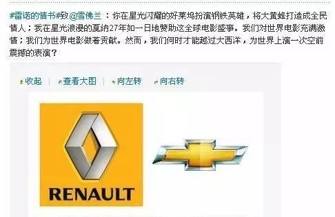 雷諾是法系車的代表,有種浪漫和優(yōu)雅。在情人節(jié)的時候,他們在微博上發(fā)起了“雷諾情書”的話題,和雪佛蘭聊電影,和大眾秀技術(shù),和凱迪拉克談歷史,夸別人的同時也提了一下自己的優(yōu)勢,比如給雪佛蘭的情書: