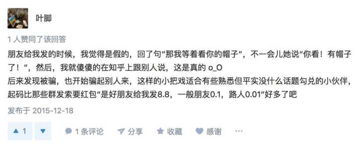 朋友給我發(fā)的時候,我覺得是假的,回了句“那我等著看你的帽子”,不一會兒她說“你看!有帽子了!”,然后,我就傻傻的在知乎上跟別人說,這是真的 o_O 后來發(fā)現(xiàn)被騙,也開始騙起別人來。