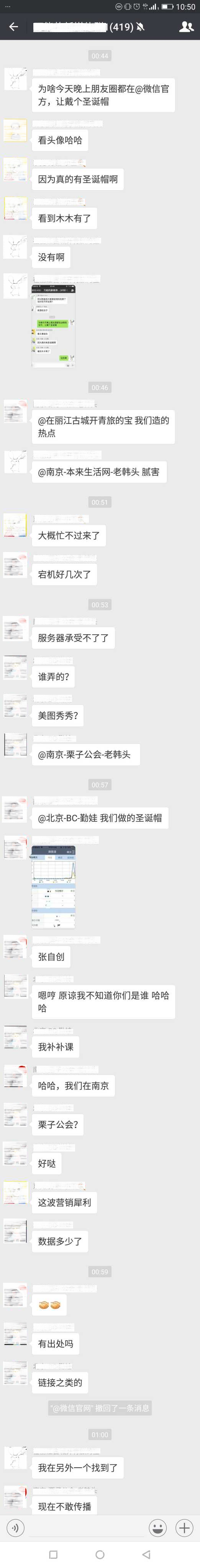 2017 年 12 月 22 日晚上約 10 點左右,朋友圈猝不及防地炸了,大家頻繁的@微信官方/微信官網(wǎng)等等求圣誕帽,而且基本求圣誕帽的用戶都戴上了小紅帽。
