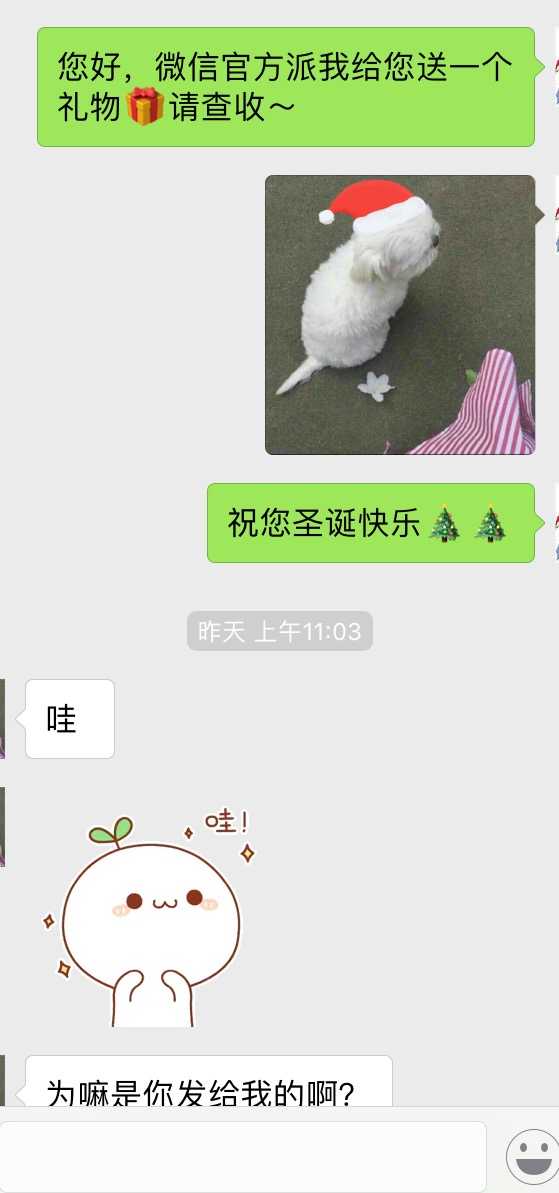 如同之前在微信流傳過很多類似的案例“把我這條話復(fù)制到朋友圈……微信就會……”一樣,但微信確實憑借著社交這條關(guān)系鏈,幫助我實現(xiàn)了這個“戴上一頂圣誕帽”的小愿望。