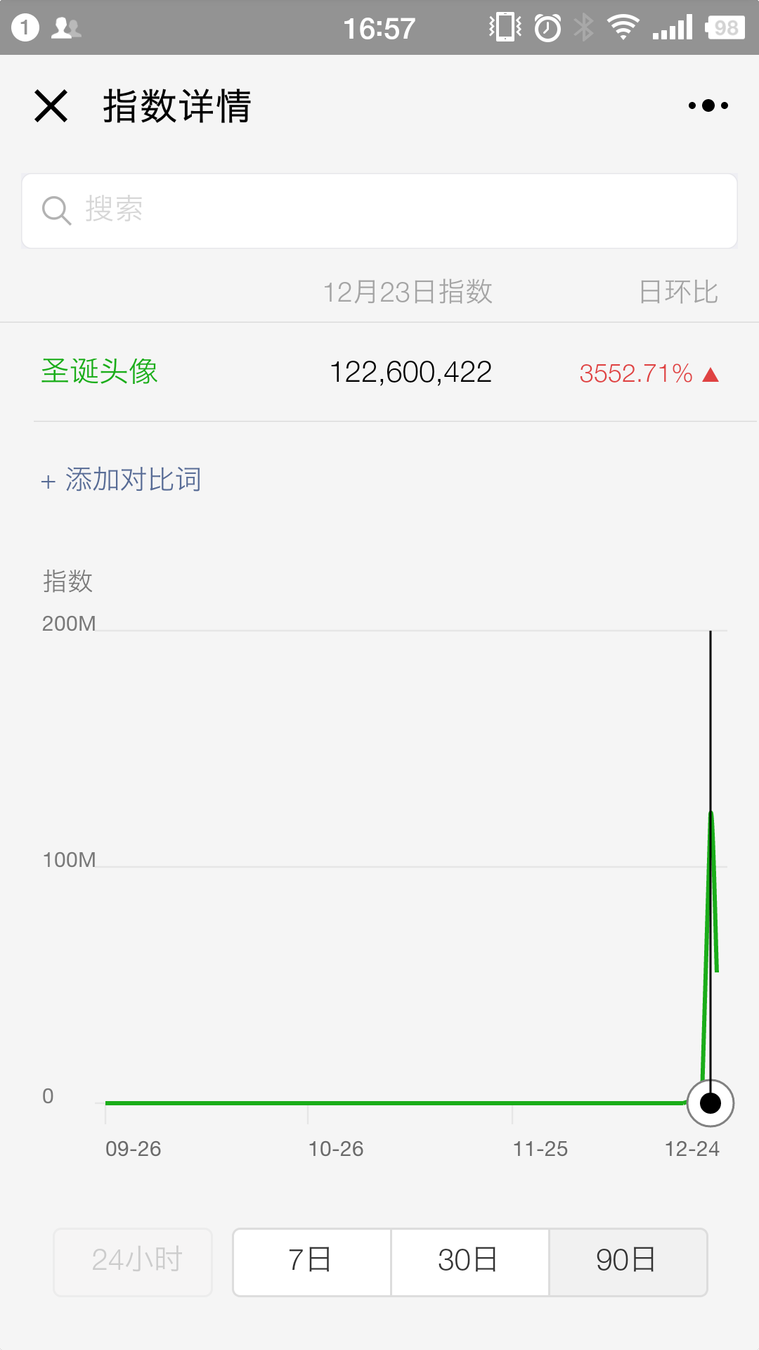 而這很可能也是沾了小程序的光,因為微信對小程序的支持力度是很大的,在搜索排名上就能看出,有功能需求的話優(yōu)先從小程序里檢索,之后才是文章什么的。通過微信指數(shù)就知道圣誕這個詞的流量有多大了。