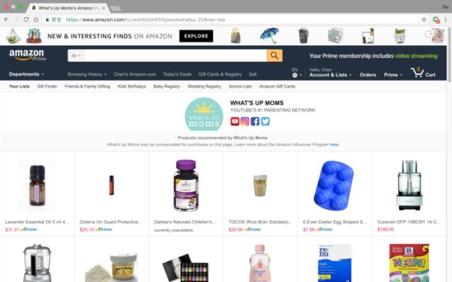 在YouTube熱門頻道母嬰內(nèi)容頻道What’s Up Moms就參與了該項目的測試,粉絲只要點擊進去其專屬鏈接就能看到 WhatsUpMoms 推薦的所有在亞馬遜售賣的商品。
