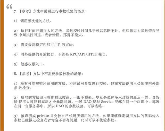 編寫代碼時(shí),對參數(shù)進(jìn)行校驗(yàn)是不可避免的。詳細(xì)說又扯到“防御式編程”和“契約式編程”的話題上。這兩項(xiàng)之所以列為參考,并沒有強(qiáng)迫大家遵守。