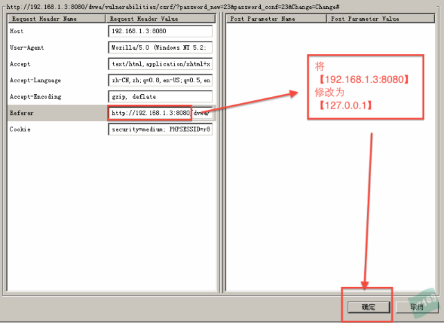 通過(guò)代碼可以看出比低級(jí)級(jí)別時(shí)多了if(eregi(“127.0.0.1“,$ SERVER('HTTP REFERER']))這一段代碼,eregi()函數(shù)是php中正則表達(dá)式,$_ SERVER()函數(shù)時(shí)取得服務(wù)器和環(huán)境信息,這段代碼的目的是匹配服務(wù)器信息中HTTP_REFERER地址是否存在127.0.0.1這個(gè)IP地址.目的是為了驗(yàn)證頭部referer請(qǐng)求源。