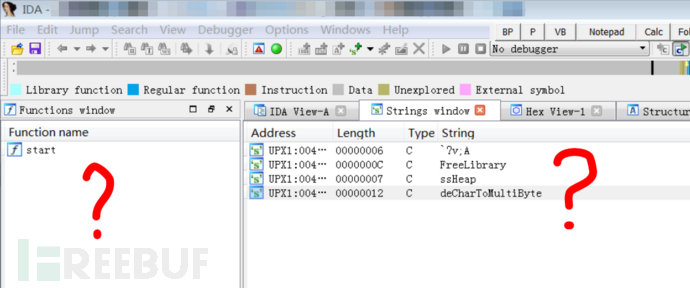 沒有,很好,直接upx脫殼,然后再次進入IDA【其實根據(jù)剛才IDA的提示也能看出來是upx的殼】: