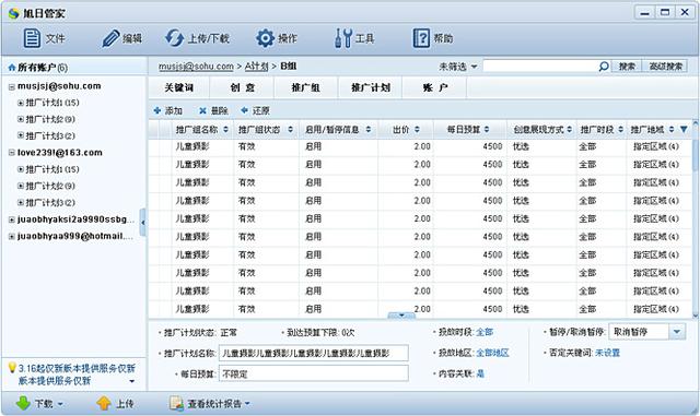 搜狗推廣管家是配合搜狗競價(jià)管理系統(tǒng)推出的一款免費(fèi)的賬戶離線管理軟件,通過搜狗推廣管家可以對(duì)搜狗推廣信息實(shí)現(xiàn)更加便捷,更為高效地管理和優(yōu)化。